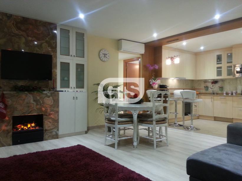 Квартира на высоком этаже, площадью 135 кв.м. в отличном состоянии: гостиная 40 кв.м. с камином из оникса, кухня на американский манер полностью отремонтированная со всей бытовой техникой высокого качества.