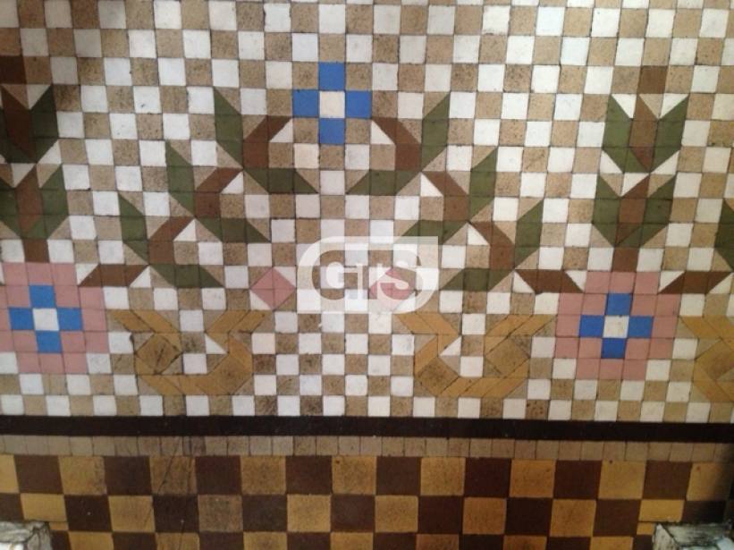 El piso se encuentra a reformar pero conserva elementos modernistas con sus techos altos artesonados, cristaleras y el mosaico hidráulico en varias estancias.